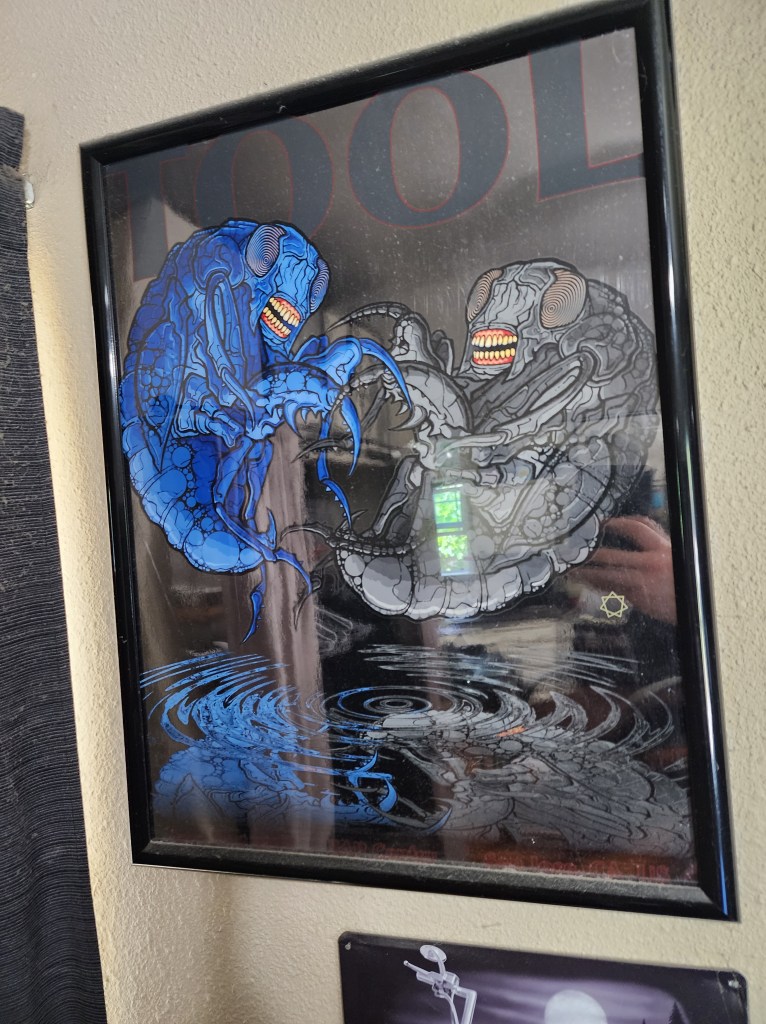 Whenever I go to a concert, I always try to snag a tour poster. That’s if they them sell it at the merch table. If they’re not available there, I usually buy a tour shirt at the merch table, cut out the design, and frame it up, I still qualify that as part of my collection because those shirts aren’t going to last forever if you wear them constantly. Getting creative like this for me keeps the memory of the event alive. You have to remember the great times you have in life in one way or another. It’s what gets you through these strange days we live in.